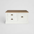 The drawers and door feature bevelled detail that frames the antique style cup handles, with subtle carving at each side creating a symmetrical look. Its fir top boasts rich graining that counterpoints the table's smooth white finish.