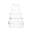 Ideal for snacks, dry ingredients and leftovers, these containers have multi-coloured airtight lids. These six rectangular food storage containers keep contents safe and fresh for a longer period.