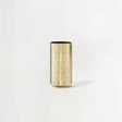 This cylindrical vase is made from ceramic and exhibits a rich gold finish surface. An array of cream-toned symmetric hexagonal patterns work wonderfully with geometric aesthetics, and the glazed finish of this vase gives it a reflective appeal.