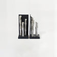 Handcrafted from high-quality aluminium, these modern bookends have a textured appearance that adds character to their unique design in a black and silver finish. The three-longstanding bamboo stick on a black finish stand exudes a contemporary look. These bookends are ideal for keeping your favourite books in one place and creating a stylish focal point in the study and living room.