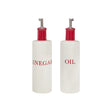 Made from robust cream stoneware, each bottle features a striking red top and either 'oil' or 'vinegar' detail, allowing you to easily identify them. A steel pourer on the bottles ensures a steady flow, while a small cap helps to keep their contents protected. Wash in warm, soapy water for easy cleaning and keep each dish looking charming. Perfect at dinner parties, be the host with the most and serve up delicious food using your Hollywood oil and vinegar set.
