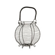 This Hygge egg basket is formed from sturdy iron wire, used to create a spherical shape with a widened opening at the top. Six curved metal feet add stability, allowing the rounded basket to stand.