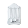 Each utensil in this set has a long, ergonomic handle which enables a secure grip while cooking or serving. These utensils are complemented by a wall mounted stand for their neat storage after use. They can be easily placed on hanging rail with their hook