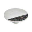 This white marble cake stand has a natural surface that is adorned with a Paua shell detail which evokes iridescent hues that give it a lustrous effect. An elegant shape with natural patterning, this cake stand is a unique piece for the kitchen and dining table.