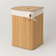 This eco friendly natural bamboo laundry hamper has a panelled design that gives it a textured look and a wood ring on the lid. The corner design saves space while the removable linen cloth inside adds to its functionality.