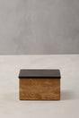 This trinket box features a blend of earthy tones. Made from robust natural slate, its dark grey lid exhibits distinctive texturing. The box is formed from eco-friendly mango wood, its light hue and characterful grain accentuating the lid's muted tones. Handcrafted, each trinket box possesses its own individual variations. *This item is handcrafted so please expect slight variations to the finish*