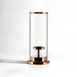Made from strong iron and robust glass, this contemporary candle holder exhibits style and create an inviting environment in the living room with its bronze finish iron base and clear glass that lets out warm glow when a candle is lit inside. Use it with other metallic and coordinating decor accessories for a cohesive looking room.