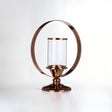 This small candle holder creates a fusion of traditional shapes with a distinctive modern twist. The brass finish metal body of the Boutique-styled candle holder is counters the clear glass holder with a matching trim around the rim coordinating with the plinth base. A distinctive aura like brass toned ring surround the top of the candle holder, adding warmth and stately feel to your interiors.