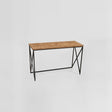 Introduce an intriguing visual accent in your living room with the Kickford console tables featuring a durable black-baked iron frame. The X-shaped legs of this contemporary console table create visual intrigue and make it a sophisticated focal point in your living room. This metal console table is adorned with a natural parquet top that further enhances its vogue aesthetics.