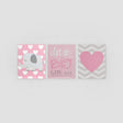 These wall plaques are a great way of adding some colour to a child's bedroom or playroom. Polka dot, love heart and chevron patterns provide a bright backdrop for their friendly graphics and font. Made from durable MDF, each one is lightweight and easy to hang. They look great arrayed together on a wall or as individual pieces of art.