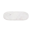 This serving board boasts an oblong shape that captures attention and provides a canvas for a visually appealing arrangement of items. The marble build gives it a smooth surface easy to clean.