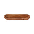 Minimal in design, this Kora olive wood oval platter is adorned by the natural grain patterns of the wood, adding an organic charm and rustic accent to kitchen and dining settings.