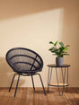 Embrace the hygge lifestyle, with the Lagom black rattan armchair. Smooth black rattan provides ergonomic comfort and is supported by a black metal frame, creating a cohesive contemporary look.