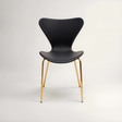 The Laila dining chair has a black undulating seat that matches the tapered back. Gold finish angular legs offer a sleek silhouette.