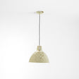This pendant light is a contemporary statement piece which has a warm metallic finish and a hammering effect on its dome. The white interior of shade brings a touch of luxe to the space. A small round canopy can easily be fixed to the ceiling.