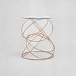 This accent table is made of iron and coloured an on-trend rose gold, and beautifully complements Boutique decor. The tempered glass tabletop is held by invisible suction cups to the extraordinarily intricate frame.