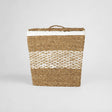 Its natural colour is contrasted by the row of white at the centre that accentuate the basket's weave pattern. A cotton lining makes it ideal for laundry duties, while the lid has a small woven handle.