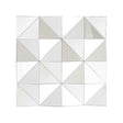 This mirror is mounted on a frame finished in muted matte silver. A series of slim, triangular pieces of glass are arranged at angles across this mirror's square surface. Combined, they produce an eye-catching prismatic effect. Each piece of glass features bevelled edges, accentuating their shape and refracting the light.