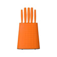 The set of knives included are 1 x bread knife, 1 x chef knife, 1 x carving knife, 1 x utility knife and 1 x paring knife. Each blade is made from strong and durable stainless steel and given a orange coating for a more aesthetically pleasing design. The storage block and handles are made from robust orange PP ensuring the knives are comfortable to grip.