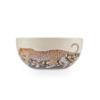 Made from stoneware, this large bowl has a smooth white finish with a leopard print and graphic on it, in black and golden tones. The bowl has wide opening to serve and eat from, while the elegant animal print adds sophistication to the table setting.