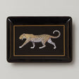 Made from stoneware, this tray has an elegant leopard graphic featuring brown and black asymmetric spotted detail, with a contrasting black surface. A warm metallic trim lends a touch of luxe sophistication to the tray.