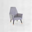 The Loretta chair is the perfect combination of sleek opulence and modern retro. Strong lines on the chair are contrasted by plush grey velvet upholstery and a three button detailing, which is supported by black wooden legs with a luxe gold tip.