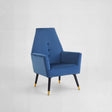 The Loretta chair is the perfect combination of sleek opulence and modern retro. Strong lines on the chair are contrasted by plush midnight velvet upholstery and a three button detailing, which is supported by black wooden legs with a luxe gold tip.