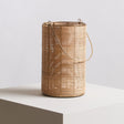 Expertly crafted from a gold finished iron frame, this hurricane candle holder features intricate eco-friendly rattan weaving, creating a round shape. The natural rattan candle holder has a matching toned sleek and curved handle further accentuating its simplistic elegance. This medium candle holder is ideal for outdoor areas like patio or porch and indoor living spaces.