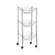 Giving the traditional trolley cart a contemporary twist, the polished chrome finish and unique designed basket shelves are ideal for storing your fruit and vegetables in while adding a stylish look to your kitchen. Solidly made for durability and with ample storage space.