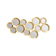 Made from solid metal, this wall mirror is composed of twelve individual circles, the flowing arrangement and alternating sizes create impression of bubbles floating in mid-air and boast a reflective gold finish in slightly weathered surface that adds texture.