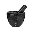The bowl-shaped mortar features a wide rim that allows one to achieve a secure grip when grinding herbs and spices. Made from marble, both the mortar and the weighty pestle are naturally non-porous, meaning that they won't retain stains from ingredients.