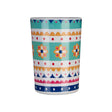 The Mimo Bazaar tumbler features a bold and colourful design, with blue, red and gold tones mixing with teal against a white background. It's made from scratch-resistant plastic, and is equally at home being used in the outdoors as it is at the dinner table.