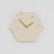 Formed with clean geometric lines, this hexagonal wall clock features sleek gold toned hands which give it a luxurious touch. A terrazzo pattern in pink and grey shades adorns the clocks textured face. Use this clock in a nordic setting and style it with the Mimo small or large photo frame for coordination.