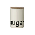 The Mono sugar jar is made from white dolomite for a fresh look, with contrasting black sugar text. Sitting neatly on top, the tight fitting bamboo lid complements the white canister and ensures your sugar granules will be kept fresh for longer.