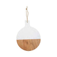 This large paddle board boasts a round shape with a marble and acacia wood surface that provides durability for regular chopping or serving of items. The board comes with a hole on its handle for a hanging string.