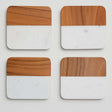 This set of four coasters can blend in any dining space with its square shape and white marble and acacia wood surface. The marble and acacia wood makes them durable for regular use and gives them both a sophisticated and rustic charm.
