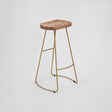 This bar stool is topped with an eco-friendly acacia wood seat which has prominent graining. Supported by an iron stand in antique brass finish, this bar stool is complemented by a footrest on the front and a supporting rail at the rear for added comfort.