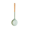 The Nova skimmer features a sage green silicone head ideal for lifting and straining food, safe for all cookware. Its flat/round wooden handle provides a sturdy grip, blending functionality and style for a refined kitchen experience.