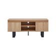 This Oakton natural wood media unit features two streamlined, handle-less cupboards and open shelving, complete with space to keep cables tidy and organised.
