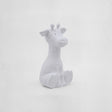 This whimsical ceramic giraffe-shaped night light is crafted from smooth, white ceramic. The light's distinctive feature is the pattern of tiny perforated holes across its body, designed to allow a soft glow to disperse and create a delicate, ambient light effect. With its clean design and playful form, it is an ideal decorative accent for a child's bedroom.
