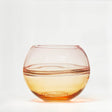 This glass vase features a captivating two-tonal ombre finish, making it a versatile statement piece for any space with a series of indented rings in the middle. The clean lines and sleek design add texture and visual interest on a mantle or side table. This modern vase is a standalone decorative piece or can be used to display floral arrangements.