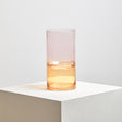 This glass vase features a captivating two-tonal ombre finish, making it a versatile statement piece for any space with a series of indented rings in the middle. The clean lines and sleek design add texture and visual interest on a mantle or side table. This modern vase is a standalone decorative piece or can be used to display floral arrangements.