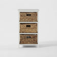 The three baskets are made from water hyacinth. Each one has a cut-out handle at the top, and boasts a distinctive weave. The unit is made from natural natural wood and is notable for its clean and simple design lines. Pair it with the Padstow six basket unit for coordinated storage space.