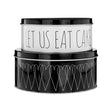 Both cake tins are coloured black and white, ideal for adding a touch of monochrome to the kitchen. A series of interlinked hearts travel around the base of the large tin, while the smaller tin boldly declares 'let us eat cake'. Formed out of galvanised steel, their powder coated finish adds a touch of gloss.