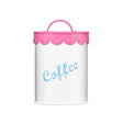 This decorative white and pink lace coffee canister is a great storage solution for your granules or beans while keeping the kitchen organised and tidy. A pink lid sits securely on top creating an air tight canister to keep your coffee fresh, while the handle ensures you can easily open when required. Made from galvanised iron with its powder coated white finish, the canister is suitable for the daily rigours of a busy kitchen. Coffee written clearly in pastel blues is accentuated against the crisp white ensuring you have no problems identifying the canister.