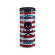 The canister is made from robust tin and has a bold red and white stripe design. Its Jolly Roger graphic is coloured dark blue to match the canister's lid, while Pirates Rule lettering is positioned above and beneath to ward off any landlubbers. Its cylindrical shape makes it suited to storing crayons and pencils.