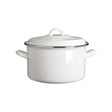 The Porter white enamel coated casserole dish has a matching, airtight lid for an efficient cooking of stews and casseroles. Its handles provide a secure grip while cooking or moving it from the stove. A sleek, metallic silver finish on the rim adds a decorative touch contrasting its smooth white inner surface.