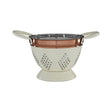 Made from non-corrosive stainless steel, this colander is a durable as well as stylish accessory. It features wide handles, draining holes arranged into diamond shapes, and a cream and copper colour combination.