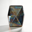 The triangular design on the oil slick finish exterior of this candle holder gives a contemporary look that corresponds to its square rim on top. The pinched design at the centre highlights its geometric structure, infusing interiors with a stylish metallic accent. Ideal for displaying ambient lighting, this modern candle holder is a perfect addition to the living room and hallway.