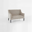 Resting on four slim birchwood legs, this elegant sofa will complement a Boutique-themed setting. The black legs contrast with the light, camel-coloured upholstery. Tufted cushioning on the seat and back add to its opulent look.